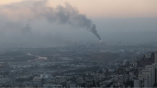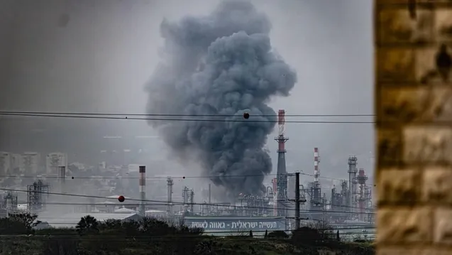 حريق بمجمع قطارات في إسرائيل جراء شظايا صواريخ، مع هجوم إيراني بخمس دفعات خلال ساعة وصفارات إنذار، وحزب الله يوسع الهجمات من لبنان.