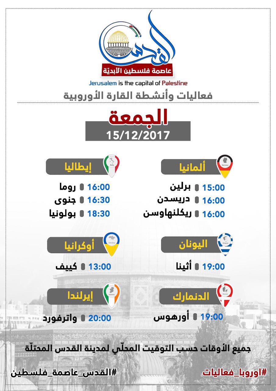 الدولية والمنددة بقرار الرئيس الأمريكي دونالد ترامب الاعتراف بالقدس المحتلة عاصمة