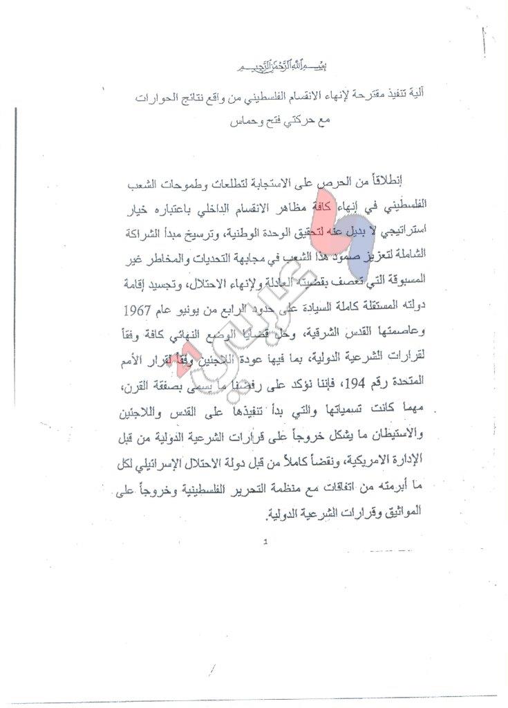 حصلت "عربي21" على نسخة من الورقة الأخيرة لحركة فتح، والتي سلمتها للمخابرات المصرية في 27 آب/ أغسطس الماضي، ردا على جهود الوساطة التي تبذلها مصر للمصالحة بين حركتي فتح وحماس.