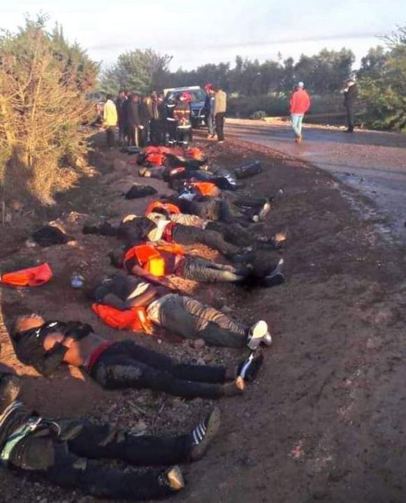 قتل 18 مهاجرا سريا من أفريقيا جنوب الصحراء في حادث سقوط عربة للنقل المزدوج في مجرى مائي، ودخل اثنان في حالة غيبوبة، بينما أصيب 15 شخصا آخرين بجراح متفاوتة، في حادثة هي الأعنف التي يروح ضحيتها أجانب بالمغرب.