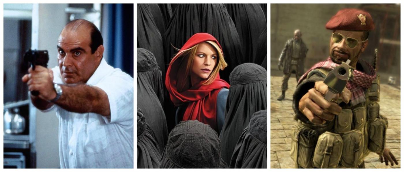 بعد أحداث 11 أيلول/ سبتمبر، وصل النقد اللاذع إلى البرامج التلفزيونية وألعاب الفيديو مثل "24"، و"أرض الوطن" و"نداء الواجب"، لإجبار المسلمين على الرضوخ للمخيلة الغربية الحاقدة والانتقامية.