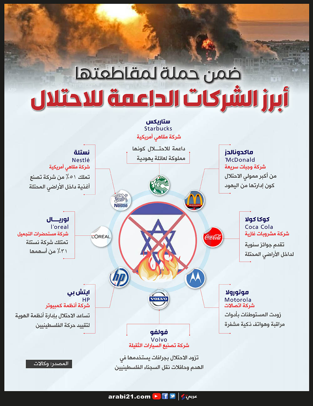 في الوقت الذي يعاني فيه المقدسيون من اعتداءات المستوطنين والمتطرفين، والاقتحامات المتكررة للمسجد الأقصى، وما تعرض له الشعب الفلسطيني في غزة، من حرب ودمار، بالإضافة للتنكيل والاعتقالات التي يتعرض لها الفلسطينيون في داخل الـ48، دعا ناشطون عبر وسائل التواصل الاجتماعي، لمقاطعة منتجات الشركات الإسرائيلية، والأجنبية الأخرى الداعمة للاحتلال.