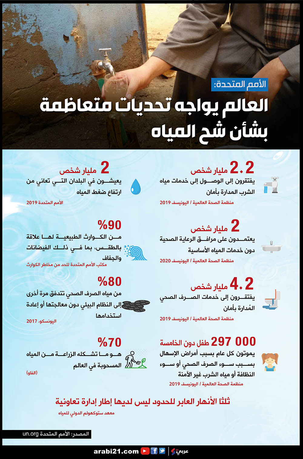 وفي ما يأتي إنفوغراف بأبرز التحديات المتعلقة بالمياه: