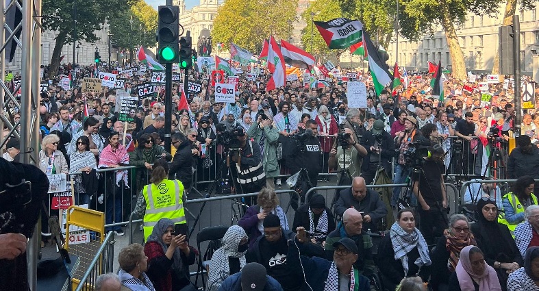 للمشاركين في مظاهرة لندن الكبرى، مثمنًا مواقف المجتمع البريطاني والمتضامنين من