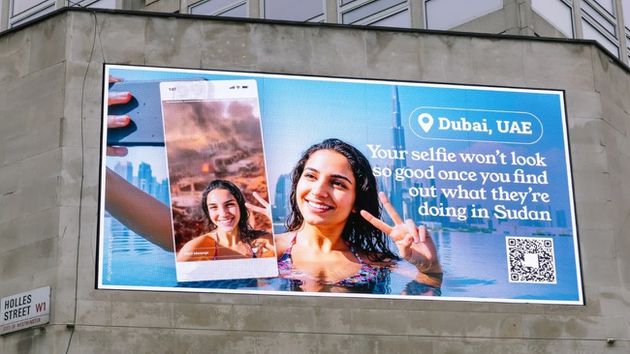 ويصور الإعلان الذي صممه نشطاء في مجموعة آفاز للحملات بالتعاون