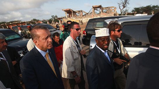طيب أردوغان للصومال عام 2011 للفت أنظار العالم إلى المجاعة التي كان الصوماليون