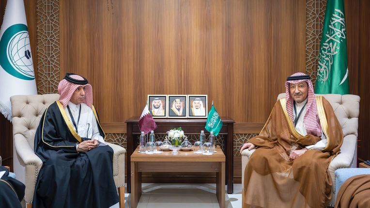 السعودية والقطرية، على هامش الاجتماع الاستثنائي لمجلس وزراء خارجية الدول الأعضاء بمنظمة التعاون الإسلامي.