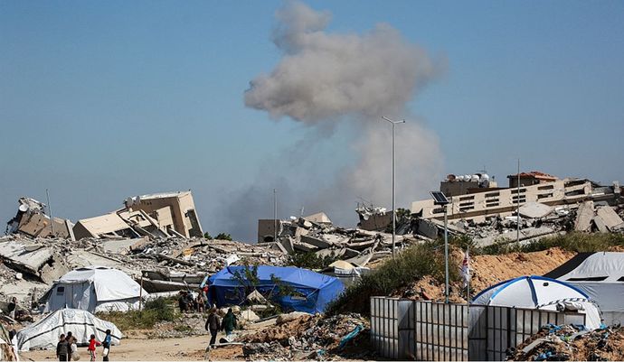 في أحدث الغارات، قتل جيش الاحتلال 4 فلسطينيين، بينهم طفلة، بقصف من طيران حربي استهدف بصاروخين منزلا لعائلة الحولي، في مدينة دير البلح وسط قطاع غزة.