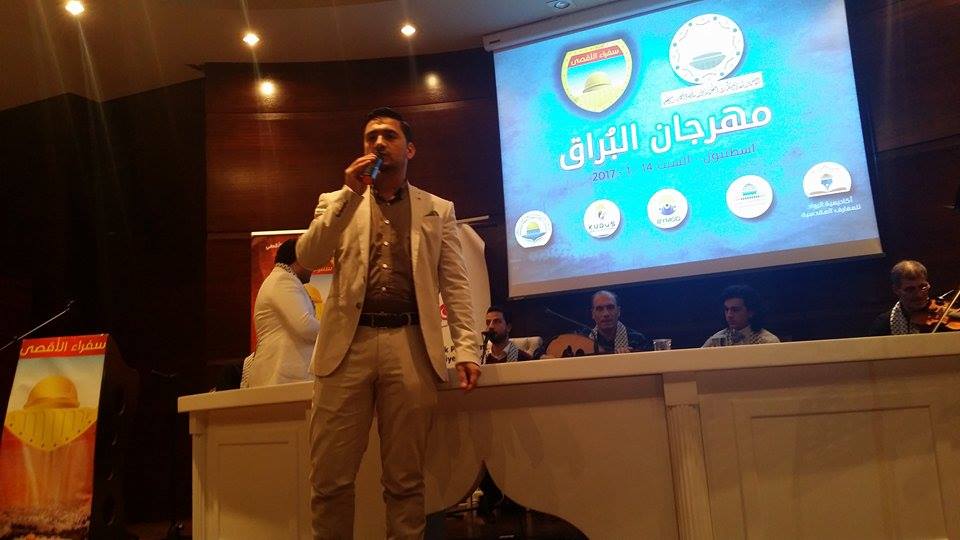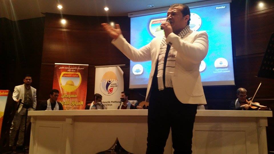 وألقى الفنان المصري المعارض للانقلاب في مصر، محمد شومان، قصيدة من نظمه، لمناصرة الأقصى المبارك.