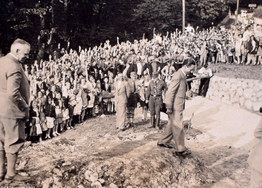 واحدة من الصور تظهر أدولف هتلر بين أتباعه خارج مقره بيرغوف. وهناك صورتان أخريان تظهرانه يبتسم أمام حشد من الأطفال وهم يقومون بتحيته.