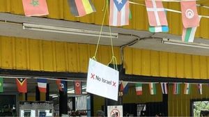 "لا للسياح الإسرائيليين"، بالإضافة إلى صورة تاجر الجنس جيفري إبستين،